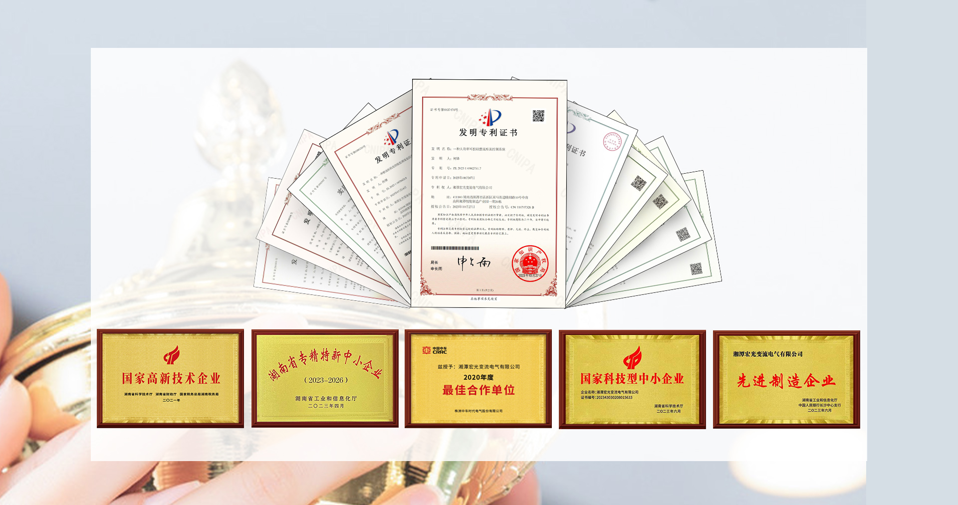 技術為企業(yè)的第一生命力,公司秉承“專業(yè)、誠信、發(fā)展、卓越”的經(jīng)營理念,始終重視研發(fā)投入和技術創(chuàng)新。公司先后被評為國家級高新技術企業(yè)和湖南省專精特新小巨人企業(yè),現(xiàn)有各項專利20多項,其中發(fā)明專利4項,公司自主研發(fā)的“ZHS-460KA大功率整流器”榮獲湖南省首臺套科技獎和省級自然科學基金獎。